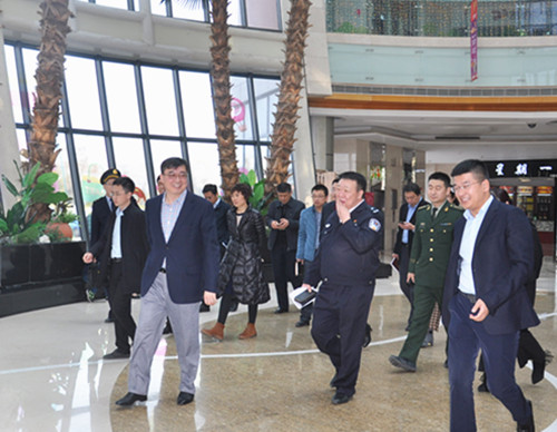 為貫徹落實市政府對于“加快實施國際城市戰略推進全市觀光購物餐飲場所品質提升”工作的要求,3月13日上午,青島市城陽區副區長于延濤,帶領城陽區公安局李局長及區安監局、商務局、衛生所等相關部門負責人一行,蒞臨青島鑫江東方城,進行工作調研。鑫江集團副總經理趙文博,鑫江東方城副總經理邱晶及相關部門負責人陪同檢查。