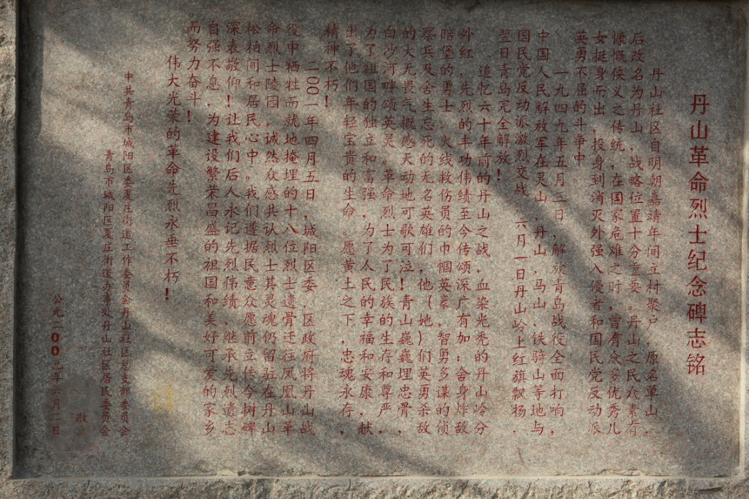 如今千畝丹山嶺森林公園昔日勝景重現(xiàn),修建親水平臺(tái)、休閑長(zhǎng)廊,修繕迎日亭、風(fēng)景亭、七神廟、文昌閣等人文景觀。在丹山嶺戰(zhàn)斗遺址,城陽(yáng)區(qū)政府正在以“解放青島”為主題,策劃建設(shè)集革命傳統(tǒng)教育、愛(ài)國(guó)主義教育、國(guó)防動(dòng)員教育、紅色基因傳承、市民休閑運(yùn)動(dòng)于一體的多功能主題公園。