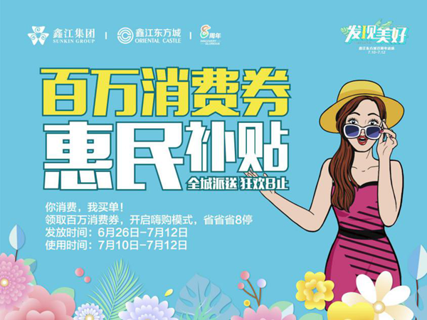 在剛剛過去的五月里,鑫江東方城百萬消費(fèi)券活動(dòng)共派發(fā)消費(fèi)券總金額超百萬,覆蓋人群上萬人,實(shí)實(shí)在在為消費(fèi)者買單。夏日狂歡季,鑫江東方城8周年店慶百萬消費(fèi)券第二季席卷而來。6月26日-7月12日,領(lǐng)取百萬消費(fèi)券,開啟嗨購模式,省省省8停!