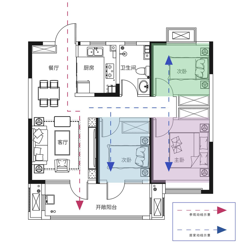 建面約92㎡功能三居H3戶型 盛妝綻放