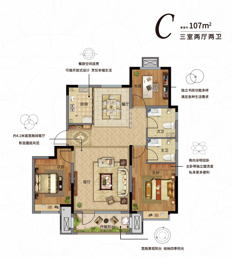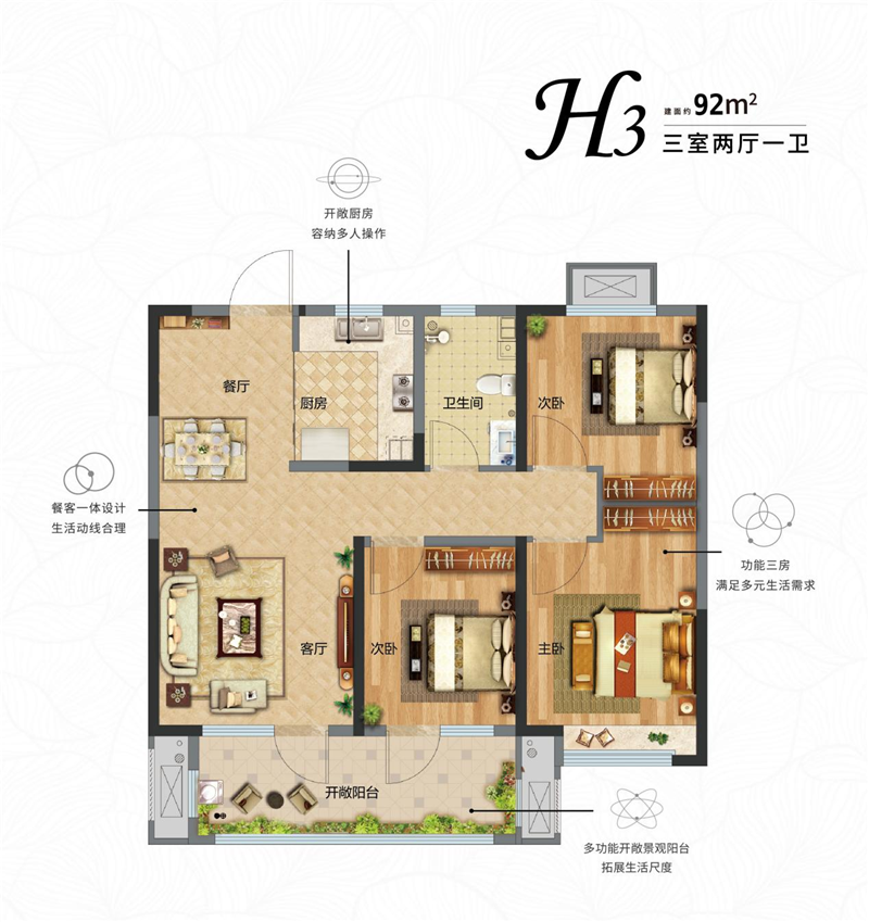 鑫江·花漾里建面約85-118㎡三維HOME家,精研空間的更多應用可能,讓家庭生活更加融洽和親密。