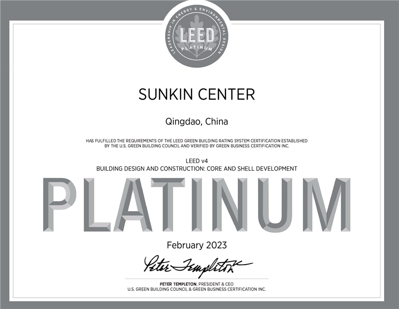 開(kāi)年喜訊!鑫江中心于2023年2月成功斬獲“LEED鉑金級(jí)認(rèn)證”。這一認(rèn)證意義非凡,它代表國(guó)際級(jí)綠色建筑評(píng)級(jí)體系中最高級(jí)別的認(rèn)證榮譽(yù)。鑫江中心成為山東省2023年第一個(gè)LEED新建建筑寫字樓鉑金級(jí)認(rèn)證項(xiàng)目(青島寫字樓鉑金認(rèn)證最高分),也是西海岸首座獲得此殊榮的寫字樓。