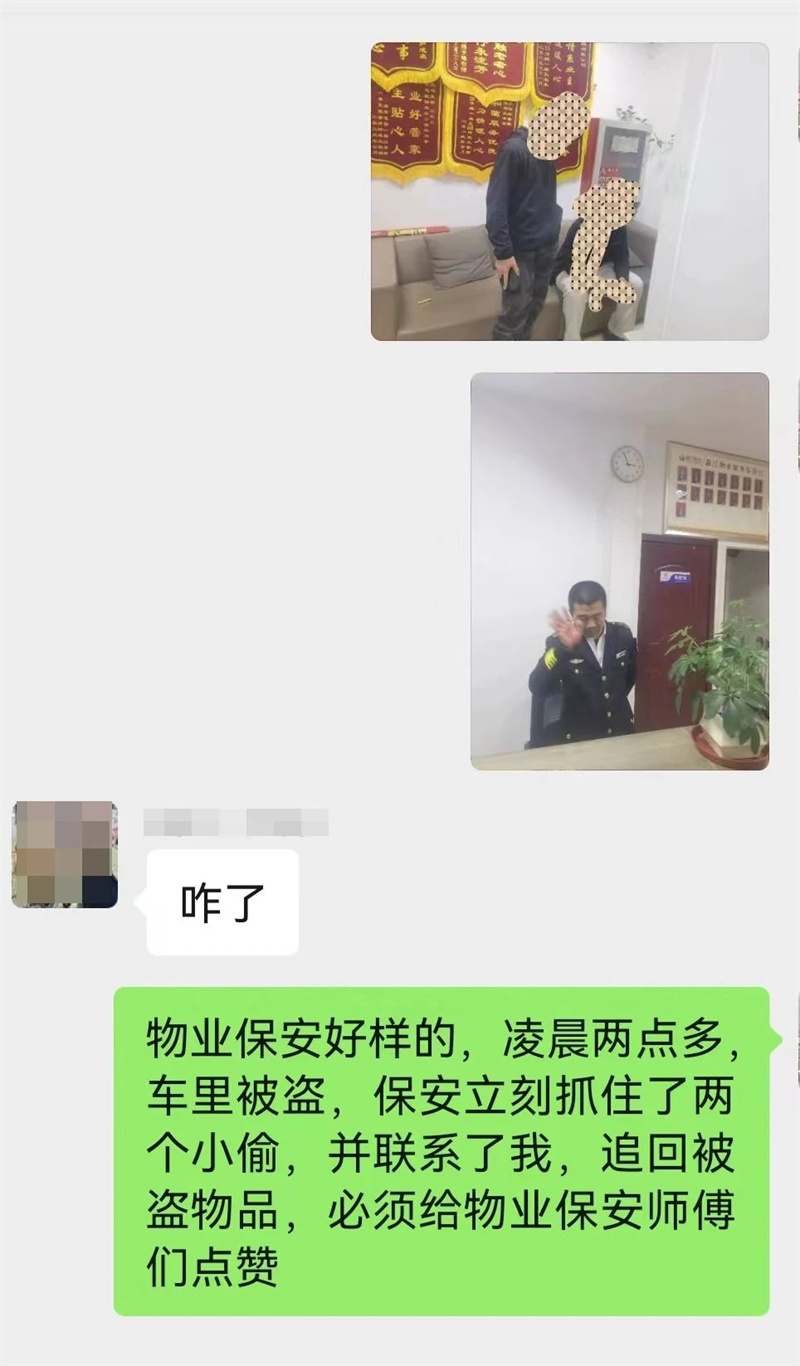 業(yè)主對物業(yè)保安及時阻止盜竊的舉動表示十分感謝,為鑫江物業(yè)保安工作點贊!